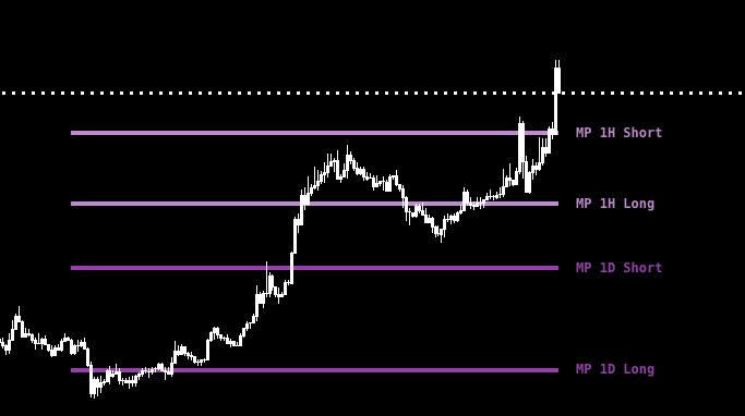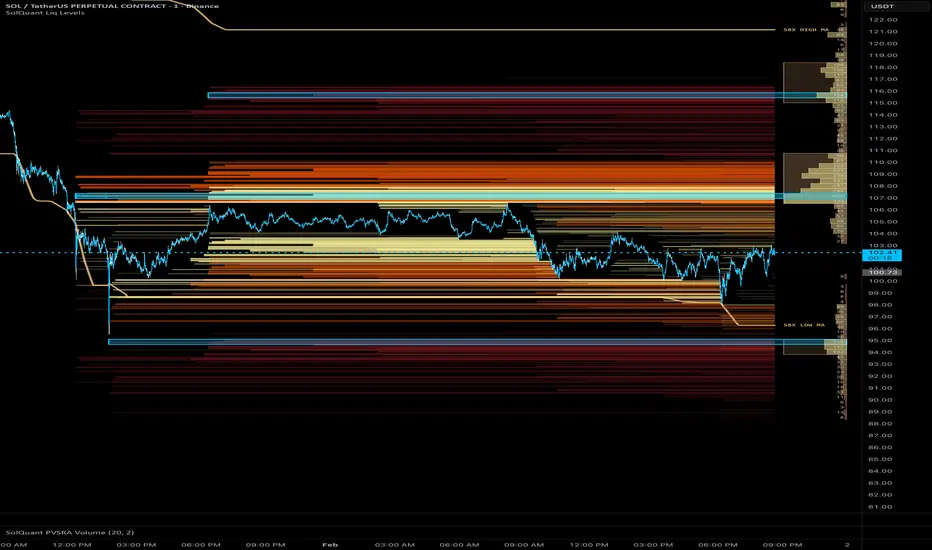 Highlights likely liquidation zones (forced close levels) based on leverage assumptions and price swings.