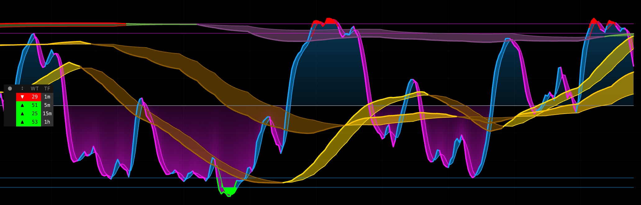 One oscillator. Four timeframes. No chart switching.