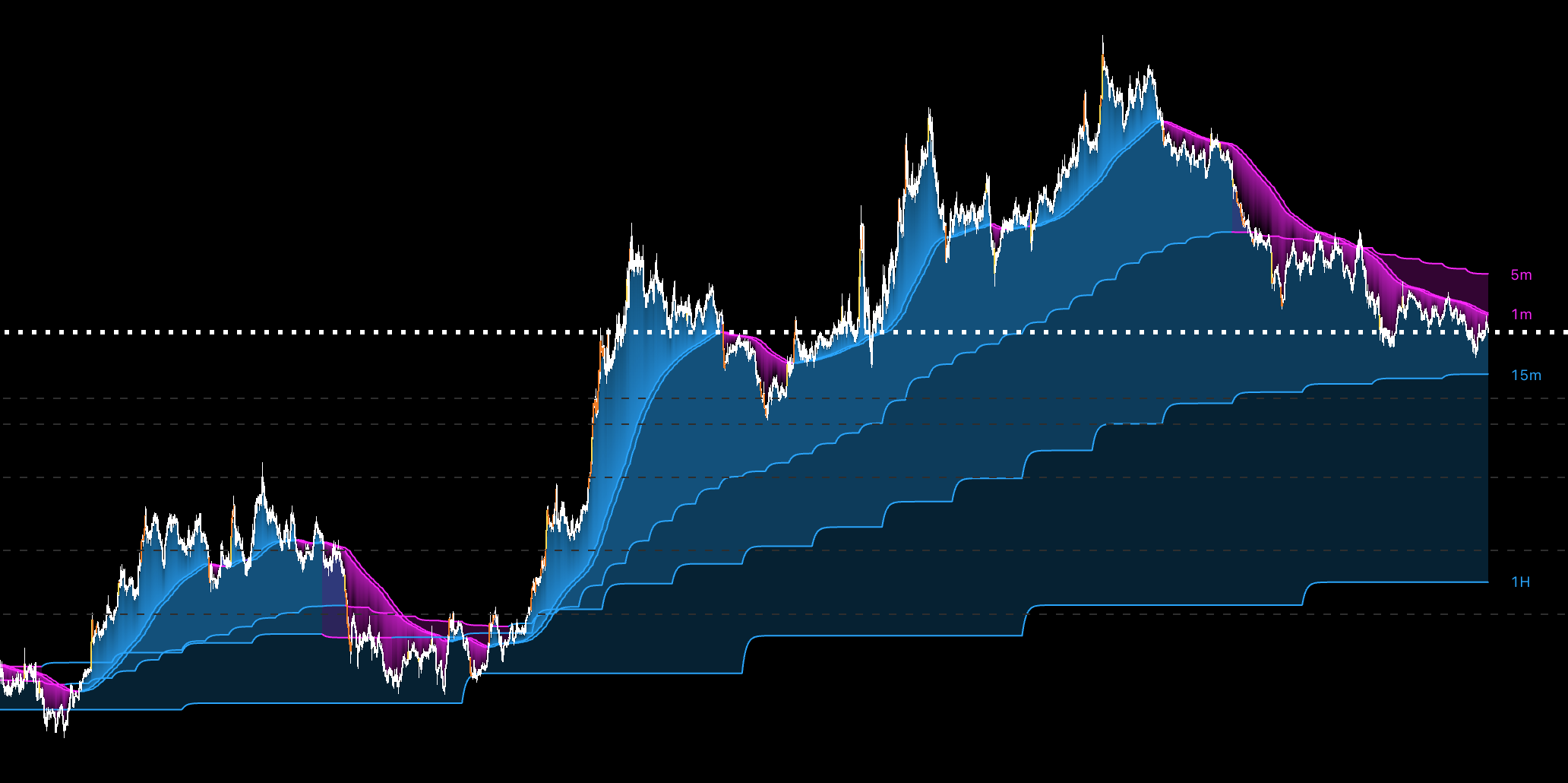 | Timeframes | Toggle visibility for Current TF, 5m, 15m, 1H, and 4H layers. |