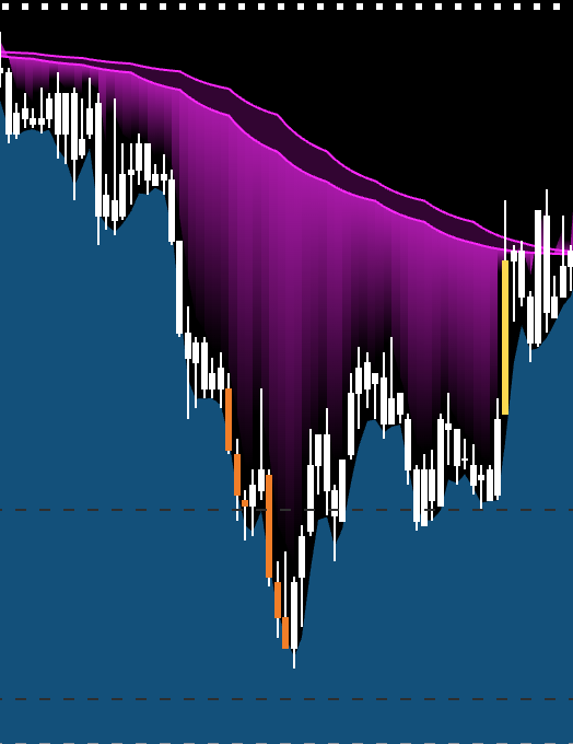 When price closes beyond the 2.618x ATR bands, candles are colored in a distinct pressure color (default: orange). This highlights overextended conditions where a reversal or consolidation is statistically more likely.