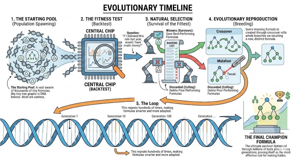 Currently running evolutionary strategies on BTC ETH SOL and SUI. This is a great way to discover strategies that are truly differentiated. These start with math not existing indicators and through natural selection the math evolves to the market. I will share insights and results after the full run (several days to run)