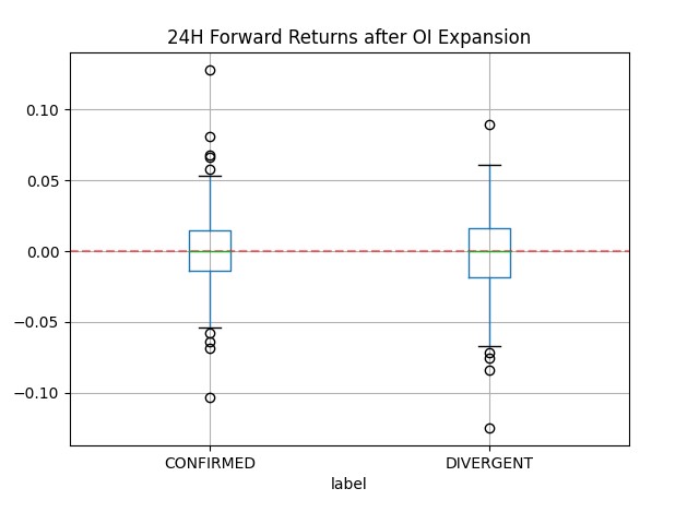 The Finding: Not all OI expansion is equal. If OI spikes rapidly without price follow-through (what we term a DIVERGENT event), it reliably marks a local top or a "wash" setup. Divergent events preceded a mean -1.41% return over the next 72 hours. It is an excellent short-term filter to prevent buying the top of a levered run.